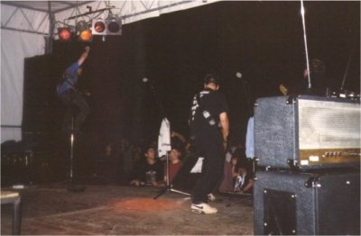 hier in Mariano stand nun also an. Hatten wir 2001 noch Sonntag Nacht um 0.00h vor etwa 500 bis 800 Leuten gespielt, so waren wir diesesmal als absolute Headliner für Samstag 22.55h angesetzt. Zuschauerzahl zu dieser Zeit: 1800 bis 2000...